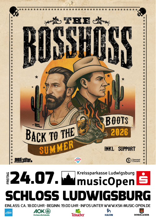 „Back To The Boots“ ist eine Hommage an die eigenen Anfänge: musikalisch, stilistisch und live. Ihr Sound: moderner, international inspirierter Country-Rock mitten im aktuellen Genre-Revival, das Acts wie Beyoncé, Post Malone oder Shaboozey gerade weltweit feiern. The BossHoss surfen dabei authentisch und mit viel Spielfreude ganz vorne auf dieser Welle und bringen ihren unverwechselbaren Mix aus Country, Americana und Southern-Rock mit. Natürlich inklusive der spektakulären Single „I’ll Be Back“ mit Arnold Schwarzenegger.